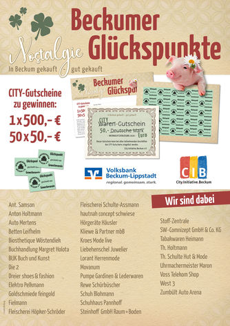 Vor mehr als 20 Jahren vom Gewerbeverein Beckum ins Leben gerufen, ist der CityGutschein ein beliebtes Geschenk in Beckum und Umgebung geworden und hat auch andere Städte zu ähnlichen Gutschein-Modellen inspiriert.
