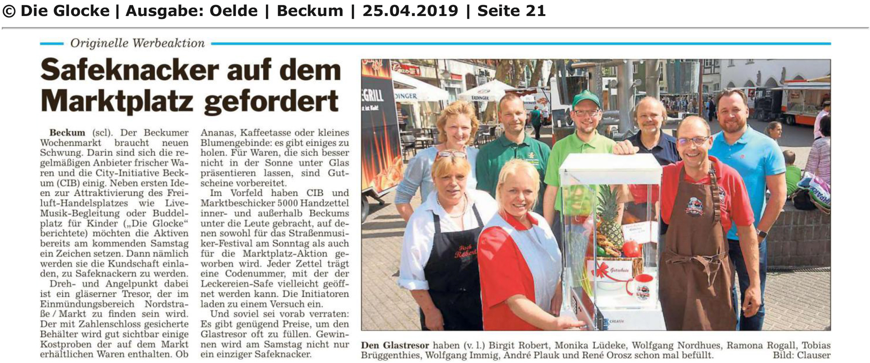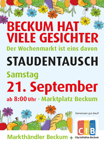 Frische, Qualität und Vielfalt, eine nette Gastronomie und schöne kundenfreundliche Geschäfte – das ist ein toller Markt mit Aufenthaltsqualität, das macht die Kommunikation in einer Kleinstadt wie Beckum aus. Jeden Mittwoch und Samstag in Beckum und jeden Freitag in Neubeckum, Woche für Woche, Jahr für Jahr.... Gerade in Zeiten des strukturellen Wandels sollten wir diese Tradition bewahren und sie als hohes gemeinsames Gut betrachten, sie gemeinsam pflegen und hegen. Darum wird die City.Initiative.Beckum gemeinsam mit den Markthändlern ein kleines Programm erarbeiten, um die Tage des Wochenmarkts zu stärken. Das ist gut für unsere Kunden, gut für die Markthändler und gut für den Einzelhandel. Gut für unsere Stadt. Lasst uns gemeinsam aus unserem Wochenmarkt einen kleinen Erlebnismarkt machen!